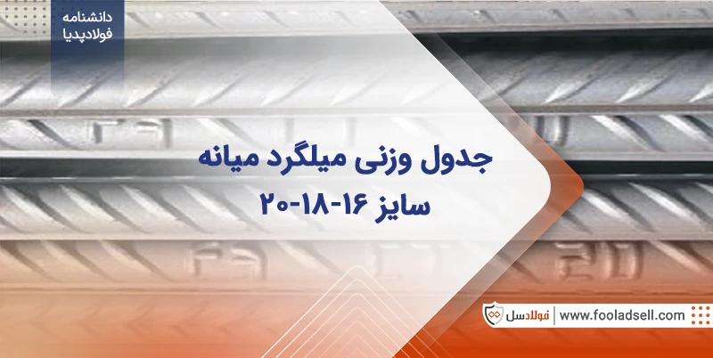 جدول وزنی میلگرد میانه | سایز 16،18،20